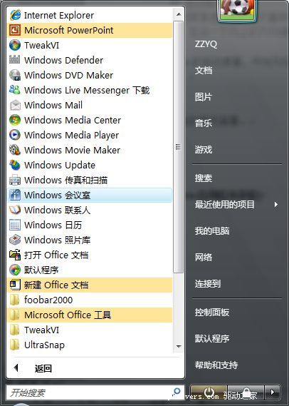 打开开始菜单,点击所有程序,我们会看到微软为Vista所准备的一些整合于系统内部的程序。当然这里也是用户后来安装的程序集中营。