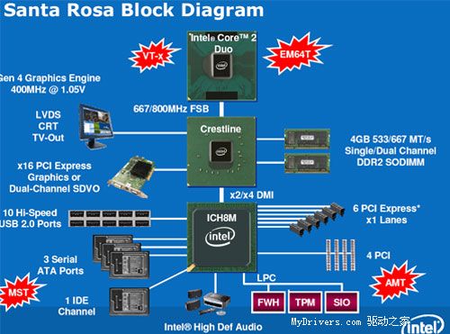 Santa Rosa平台的性能还是很值得期待的,与现有NAPA平台的Merom处理器的提升幅度在实际使用中能感受到明显区别,而且需要指出的是,我们测试的超频前后的T7200都是在相同的顶级桌面芯片组975X上进行的,而实际上现有NAPA平台的945GM/PM芯片组的性能较975X有较大差距,而965GM/PM则能够较为接近975X的性能。因此如果将芯片组平台的差距考虑进去的话,那就不仅仅是我们上一页的表单中列出来的主频和外频的差距了,而最高性能差也不仅仅是25.4%了。