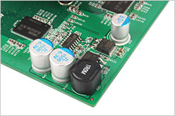 我们可以清楚的看到它的VGA和DVI接口部分都配备了比较完整的低通滤波电路,这主要是保证显卡最基本的2D性能。即便是在大多数人都忽视的DVI接口上,我们看到它的电容也是很饱满的,其做工的优劣可见一斑。