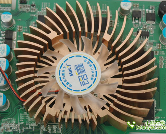 这个风扇看起来很眼熟,它在其他同价位的显卡中也经常可以看到,风扇整体散热效果上佳,且噪音控制的不错。显存部分设计比较独特,板载显存仅为128MB,但是他通过率先将Hybird显存技术引进8600GT显卡。通过该技术,视界风追风版 8600GTU-512D3TC最大可划拨384MB的系统内存作为显存,再加上板载的1500MHz 128MB DDR3显存,总共组成512MB的显存,大显存可以让显卡在高分辨率下拥有更好的表现。