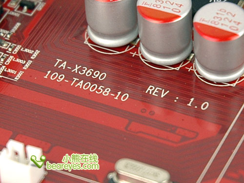 该卡PCB的型号为TA-X3690 109-TA0058-10,板型布局走线与国内市场上大部分通路的HD 3850、HD 3690显卡类似,区别在于该PCB省略了Crossfire接口。