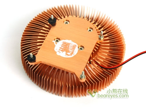 散热器底部虽然没有经过抛光处理,不过这样的设计可以使涂抹硅脂后散热器与GPU核心接触更为紧密,同时也使散热面积有所增加。
