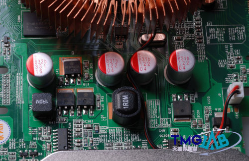 显卡的供电部分,铭鑫8600GTU采用的是核心和显存分离式的供电设计。供电电容完全采用了100%的全固态电容,一颗固态电容的成本等于N家其他品牌DDR3产品上全部液态电容的成本总和。
