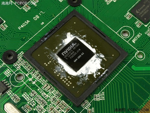 卸下铭鑫这款显卡的散热器之后,我们看到了整个显卡的布局。可以看出,这是一款非公版设计的8600GT显卡,给人的整体感觉并不豪华。核心在PCB的中央,而显存围绕在核心周围。供电部分采用的是分体式设计,核心、显存单独供电。