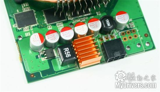 另外1相供电电路位于显卡末端,主要负责向显存供电。显卡需要6针插头外接供电。