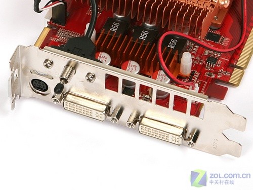 显卡视频输出接口方面,铭鑫HD4850惊镭版采用双DVI+S-Video的设计,再搭配DVI to D-Sub转接头,可以满足就绝大部分用户日常所需。同时显卡采纳双档板辅助散热设计,散热孔将把热空气排出机箱外。