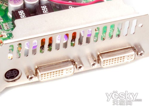 显卡采用了常见的双DVI+TV-OUT接口设计。