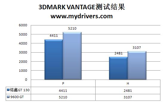 由于流处理器要少于9600 GT,铭鑫GT 130在3DMark Vantage中的得分要比9600 GT落后一些,不过凭借高核心频率、高流处理器频率,铭鑫GT 130在支持PhysX物理加速技术的游戏中仍有较好表现。?