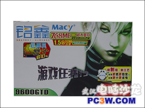曾经风靡一时的9600GSO采用和8800GS一模一样的规格,后来nVidia推出G94核心的9600GSO来取代老的G92核心产品,相当于9600GT的简化版,流处理器由64个缩减为48个,其他规格和9600GT一致。喜欢出奇招的铭鑫推出了一款“视界风”9600GTD 768MB D3双子同心版,单从命名上来看很像9600GT,但与众多市售的9600GT不同的是显存采用的是个老版本G92核心的9600GSO一样的768MB,到底这是怎样一款产品呢?