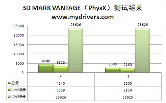 在此项测试中,笔者将开启与关闭PhysX时,Vantage的不同得分都整理列表了出来。这是因为,在此项测试中笔者试图像大家说明其GPU通用运算方面的价值。众所周知,NVIDIA现在大力推行以CUDA为中心的多种通用运算功能,而在游戏方面,PhysX就代表了其最前沿的技术应用。那么,一块市场中较低端的的9600GT级显卡能给我们带来多少提高呢?从列表中进行简单的计算可得出,仅在PhysX计算方面,该显卡能提高CPU得分11950至12163,这直接是102%到106%的性能提升!如果将其与中高端显卡进行SLI,那么性能的提升幅度只能用恐怖来形容了。由此可见,该卡不但自身性能能够满足大家当前的一些游戏需求,在未来3-5年中(如果PCI-E标准得以保留)依然具有较高的保值价值。