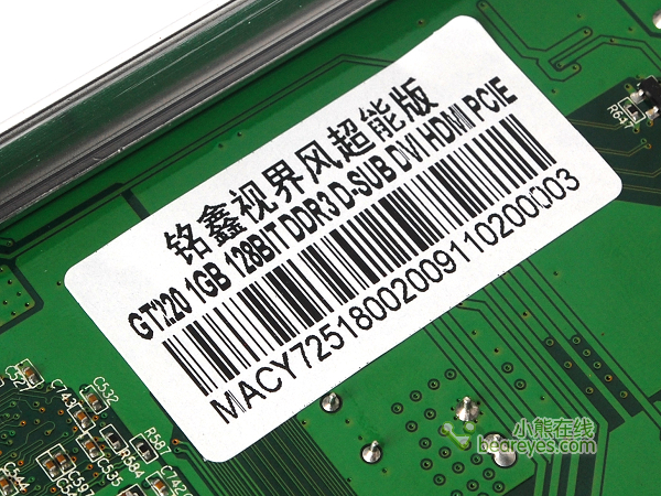 铭鑫GT220 1GB视界风超能版采用2+1相供电设计,采用全固态铝壳电容和铁素体电感,为显卡在高频下稳定运行打下了坚实的基础。